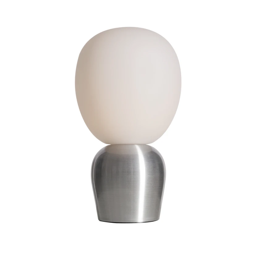 La lampe Buddy argentée associe une structure métallique à un abat-jour en verre soufflé à la bouche. Sa forme ronde lui confère une douceur agréable et s'harmonise parfaitement avec ses couleurs sobres.