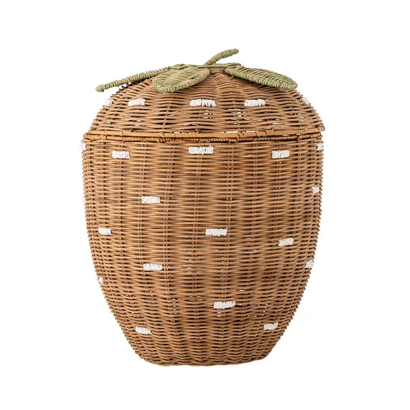 Le panier de rangement Pelino avec couvercle brun - Bloomingville est la solution parfaite pour le rangement dans votre maison. Ce charmant panier de Bloomingville MINI a la forme d'une fraise et ajoute un élément ludique à la chambre d'enfant et au salon. Avec son design unique, il est idéal pour ranger les jouets, les ours en peluche et autres petits objets que les enfants adorent. Le panier n'est pas seulement pratique, il est aussi un complément décoratif à vos accessoires de maison.